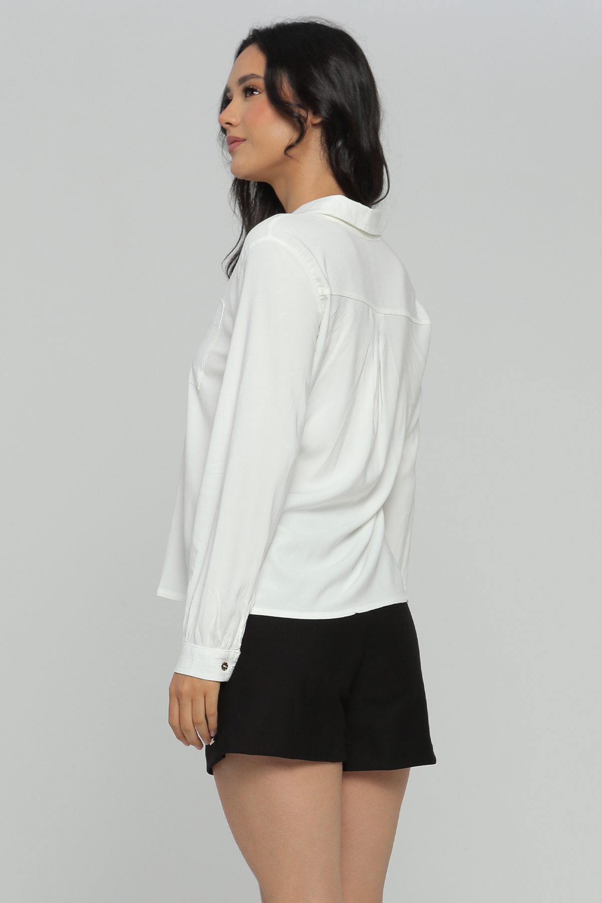 Descripción: Una pieza clásica y atemporal que nunca falla. Su diseño de manga larga aporta elegancia y protección, mientras que su silueta cómoda y femenina se adapta a cualquier ocasión. Confeccionada en una tela ligera y de excelente caída, es ideal para looks formales, casuales o de oficina.