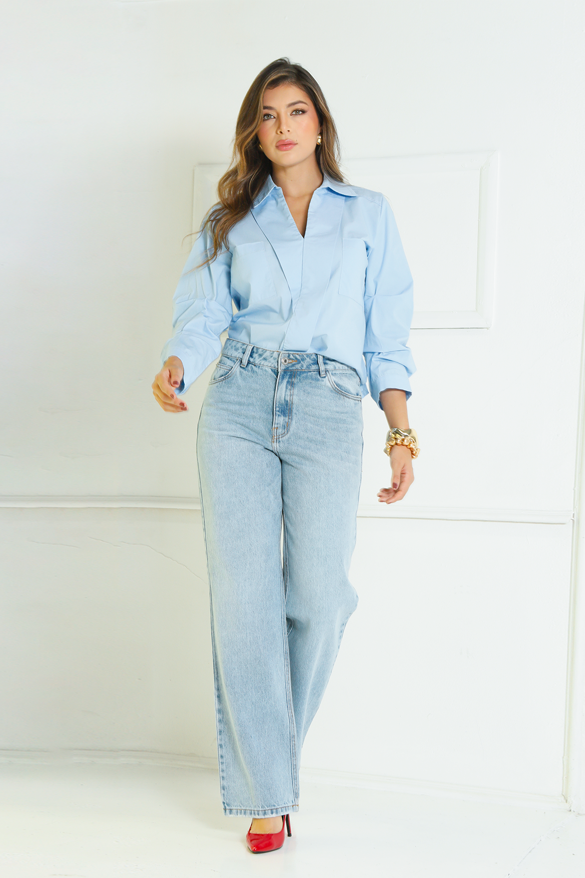 Descripción: Una prenda atemporal y versátil que combina estilo y comodidad. Confeccionada en popelina, un tejido ligero y fresco que brinda estructura y elegancia, esta blusa de manga larga es perfecta para llevar en cualquier ocasión. Su diseño incluye un bolsillo funcional al frente, que aporta un detalle clásico y práctico. Ideal para combinar con jeans, pantalones de tiro alto o faldas, es una pieza esencial en el clóset para crear looks formales o casuales con un toque sofisticado.