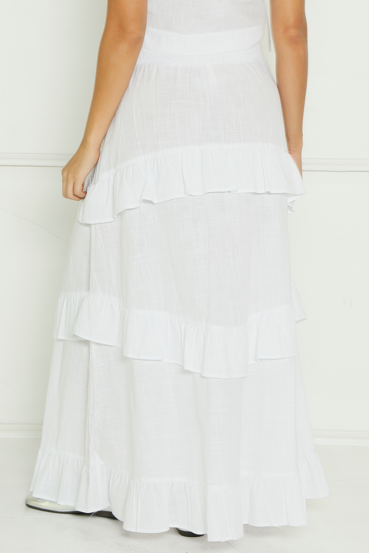 Descripción: Un diseño femenino y lleno de movimiento que aporta elegancia a cualquier look. Su pretina definida realza la cintura, mientras que los boleros añaden volumen, fluidez y un toque romántico. Cuenta con una excelente caída, esta falda es ideal para crear outfits frescos y sofisticados, perfectos para ocasiones especiales, días soleados o looks casuales chic. Combínala con blusa o tops para un estilo moderno y encantador.