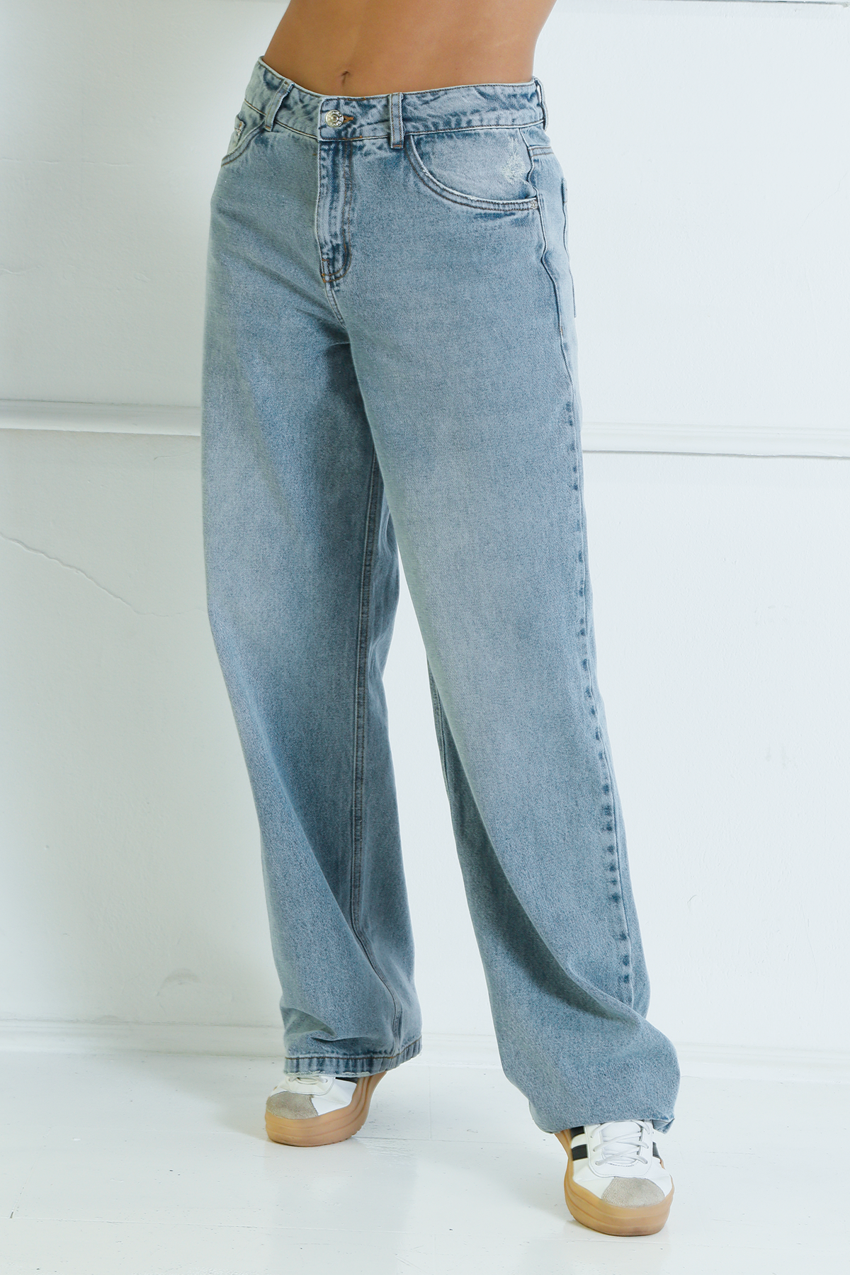 Descripción: El jean perfecto para un look relajado con mucho estilo. Su silueta baggy de tiro medio ofrece comodidad absoluta y un fit moderno que se adapta a diferentes tipos de cuerpo. Con un diseño versátil y urbano, es la prenda ideal para combinar con básicos o con piezas más trendy, logrando outfits que se ajustan a tu día a día.
